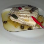 Tastes like fish. 🙂 This was served with fried capers, green cabbage, and brown sage butter. It was a delicate and tasty dish. Beer pairing: Houblon Chuouffe.