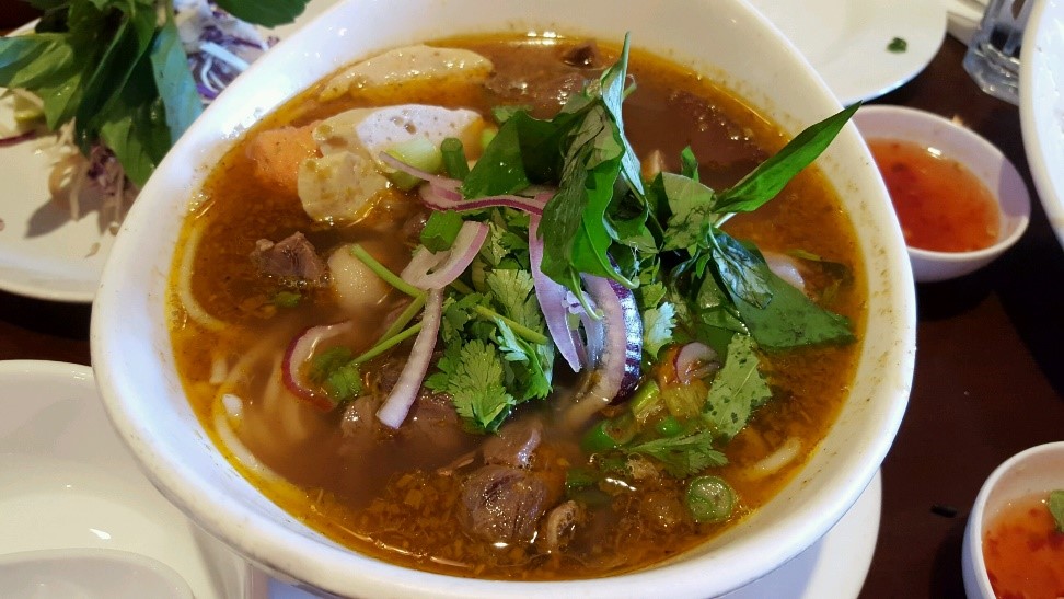 Rice Paper is considered a “cheap eat,” so you can order many items to sample and then bring your bounties home for subsequent feasts. Those who are watching their pocketbooks can take comfort that one can easily fill up for under $25 dollars. I took the first approach and ordered Cha Gio (crispy spring rolls), Rice Paper’s Yelp-famous Oc Len Xao Dua (coconut escargot curry), the Rice Paper Combo Platter, and Bun Bo Hue (spicy beef noodle soup). I did not get their Banh Xeo (Vietnamese crepe) because I order it all the time at my local Vietnamese dive near my house (my husband’s regular lunch escape). If you’re new to Vietnamese food, Banh Xeo is a light, unique, yet safe place to start appreciating Vietnamese cuisine.