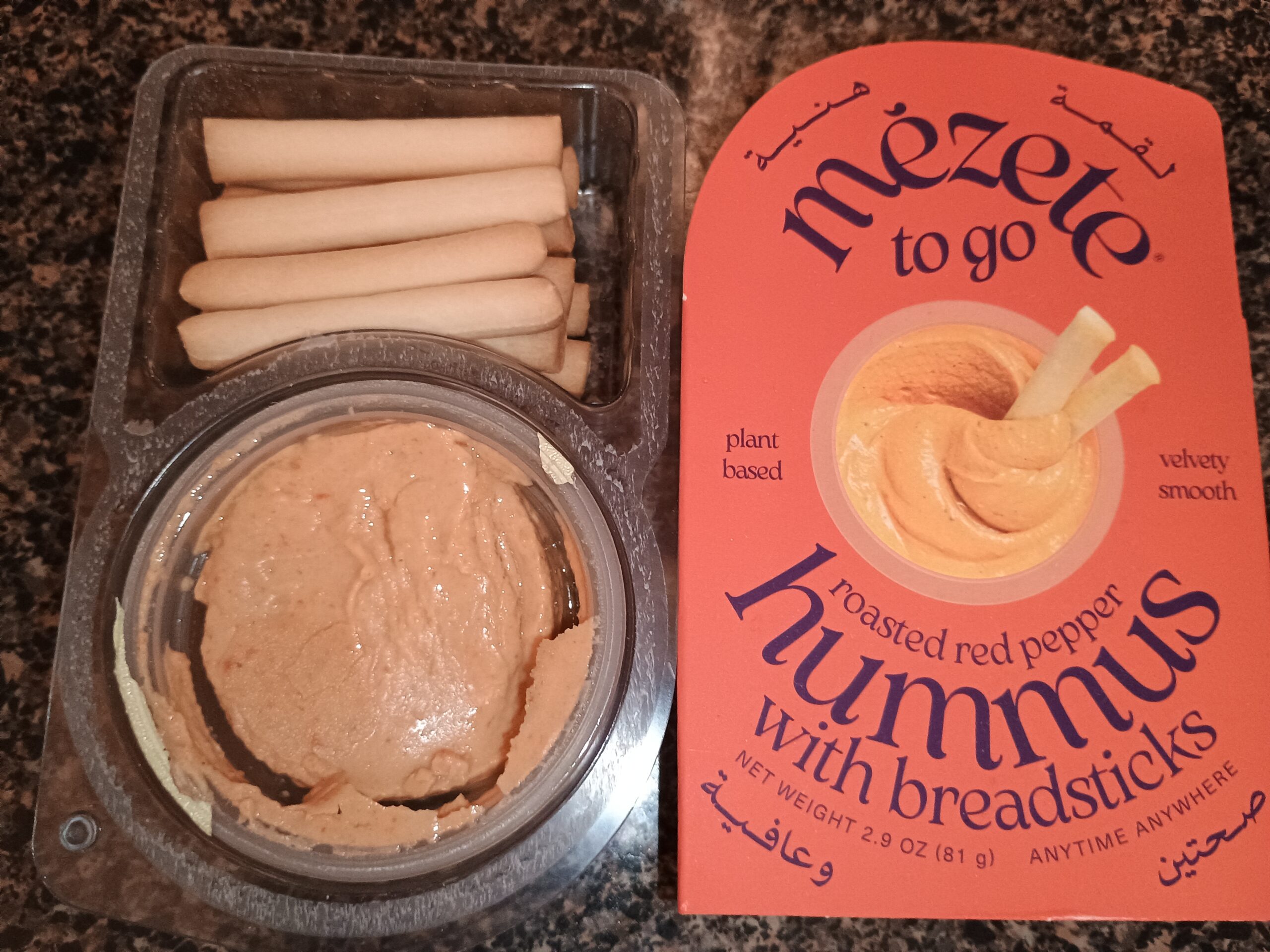 We sampled several hummus options (Original, Roasted Red Pepper, Red Hot Chili, and Zaatar), as well as Baba Ganouj and Shatta Sauce. The main selling point for us is that these products are shelf stable, so we can keep several of the individual packs (with the breadsticks) around for hummus emergencies at work. Of the hummus options, we preferred the original flavor — you can really taste the tahini. The Baba Ganouj is good too, with a creamier texture and smoky flavor. The Shatta Sauce (hot sauce/paste) seems like it would work well with felafel and a tahina sauce).