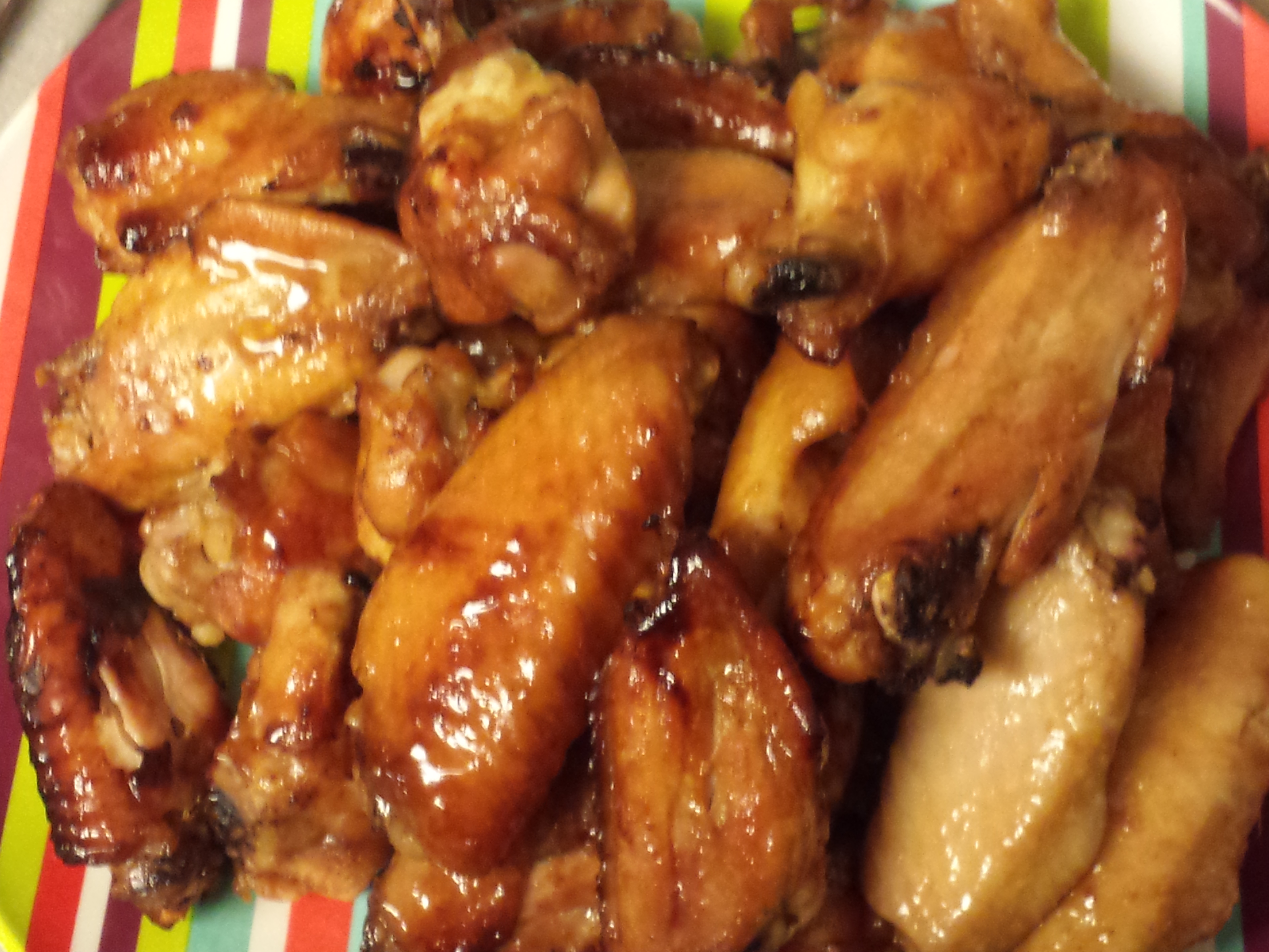 I made the Honey Garlic Chicken Wings for a potluck. They came out with a gorgeous golden brown glaze on the skin. The wings were tasty. Hoisin Sauce, soy, honey, garlic and rice vinegar play off of hot pepper sauce. The recipe suggests an amount of hot pepper sauce, but says to do it to your tastes. I’d recommend doing at least the amount in the recipe because the flavor balance won’t be there without that heat. I kept them very mild, and the end result was a sweet, garlicy wing. The flavor was maybe a seven and a half out of ten, but because they were so mild, they were very easy to keep eating. If I was making them just for my household, I’d have made them a little spicier for better sweet/salty/ spice balance. This is a good make ahead item, I’d get the wings sitting in the marinade overnight next time before cooking to get even more intense flavor into the wings. As a plus, when you bake these and boil the marinade, your entire house will smell amazing.