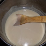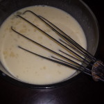 During preparation of the custard, a hidden sentence stated to drain the custard in a chinois. One Google search later, while knee deep in cooking custard, turned out we didn’t have anything like that. Hmmm. It is a fine mesh strainer that gives a creamy consistency to things like custard. These are things that should be in the list of necessary kitchen wares before getting started. Oh well, slightly grainy custard still tastes pretty darn good.
