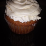 I also made the Pumpkin cupcakes with bourbon buttercream frosting. I got six cupcakes out of the batter and frosting rather than the four listed in the book. The cake itself is really good, and is moist with an interesting blend of spices. It is subtly sweet and spicy; I’d totally eat the cupcakes un-iced as a muffin. The buttercream frosting is very sweet, but it balances very well with the cake. These cupcakes were so delicious.