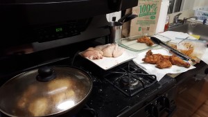 The preparation was easier than originally thought, as it looks and sounds intimidating to perfectly blend a mix of spices, batter, shake, and fry. However, as you go through it, that perceived intimidation quickly fades. Another benefit is that you also don’t need a lot of equipment to make this dish. Of course, a fancy Dutch oven or fryer makes things easier, but all you really need is a big pan that can cover the pieces of chicken with the frying oil. In addition, to batter up the chicken the directions just call for a paper grocery bag. So simple.