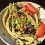 I don’t own a high-powered food processor, and haven’t got the time or inclination to do my own sprouting or making nut cheese (real, cheese-cheese, is available and bloody delicious), so I started simple: the Fresh Herb Toss (page 105). As directed, I tossed the herbs (cilantro, basil, parsley) with olive oil and lemon juice, plus salt, and served. It was tasty and refreshing, but a bit bland. I added some cayenne pepper and diced cucumber (see? still raw!), which I found greatly improved the dish.
