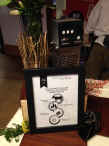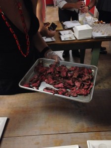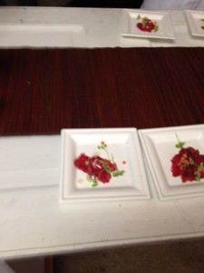 Beef Shoulder Carpaccio with pickled summer veggies and a white smoky sauce that was placed over top of the beef; the chef was a youthful young man who was very passionate about cooking this dish using the smoker. This eco-friendly method is able to take a big piece of meat and slice off pieces that would be good for a party.