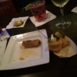 The evening opened up in the Main Dining Room (the area open to the public) with servings of Sweet Potato Chips and Jerked Chicken Wings. The Sweet Potato Chips were served with a Jalapeño Mayo that was quite amazing in its execution. I say amazing because never before have I tasted a dish or condiment of any kind that had jalapeño peppers where the flavor of the pepper came through elegantly and the heat was but a subtle undercurrent. The Jerked Chicken reflects Chef Peter’s Caribbean upbringing and again the heat was subtle and the wings were flavorful in a very balanced and nuanced way.