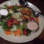 Look at those sublime chunks of feta, lounging on ripe red tomatoes, Kalamata olives, and cucumbers! Feta cheeses are all salty, but this one was relatively mild and not super tangy. Lightly dressed and perfectly herbed, it made for a refreshing, delightful salad. Dried olive was sprinkled atop it to compliment the brined olives underneath. I suggest crumbling the feta and mixing it a bit before serving. Again, note the care put into the food: because it came unmixed, it’s a hint that the salad was made-to-order and wasn’t pre-mixed hours ago in the kitchen.
