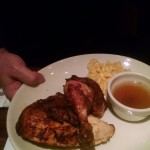 The first things I tried were the Sangria, the ginger margarita, and the drink-special. The bartender uses her own sangria recipe and it’s very good: rum, red and white wine, apples, and honey make for a pleasantly punchy drink that’s mildly sweet and the opposite of watered down. It’s flavorful and worth ordering.