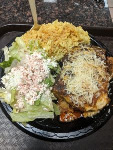 My father ordered his favorite, the enchiladas. His go-to combination, which he highly recommends to anyone ordering enchiladas is one shredded beef, one cheese and onion, and one stewed chicken. I had a portion of some of his as we were all sharing and the winner to me was the tender shredded beef enchilada. All of them come smothered in sauce and cheese served alongside beans and rice.