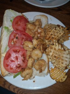 My sister and mother shared a combination of chicken and shrimp fajitas. As they were picking at my burrito I grabbed a small flour tortilla and scooped the grilled shrimp, caramelized onions and soft bell peppers into the tortilla. I topped it with some sour cream, salsa and lettuce and had a fantastic albeit wet mini shrimp taco.