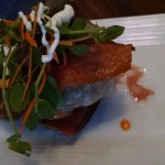 The Norvégienne is wrapped up in the thin, moist and spongy crepe is crema fesca, which is a lighter, fresher version of sour cream that balances the Norwegian smoked salmon with added flavor and texture from the spinach.