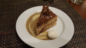 However, as a special treat and because there isn’t anything else like it, try the signature cake created by Co-owner and Executive Pastry Chef Patrick Musel, called the Walnut Dacquoise. This cake has layers of light cake and in the middle is a layer of walnut butter cream, crushed walnuts, and flakey pastry. If you like any of those things, you will love this cake.
