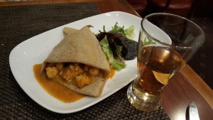 Susan Limb wanted diners to enjoy the authentic of enjoying crepes, so she is pairing them traditionally with a semi-dry hard cider. This may seem like an odd combination at first, but it works. The subtle sweetness and gentle fizz simply complements the savory crepes.