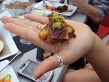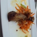 At an event at Art and Soul, I got to speak with Art Smith, and try some of his food and desserts. His is the only red velvet cake I’ve ever liked and was very tender and flavorful. The sausage wrapped in pork (a recipe of Wes Morton, Art and Soul’s new executive chef) was amazing, especially the crispy skin. I always love the food at this restaurant. Art Smith is very personable, and I love his philosophy that food should be fresh, local, and soulful.