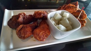 The wings at Bonchon in Navy Yard were excellent, especially when ordered spicy. They have a great crunchy (and somewhat shiny) coating and seem to have been fried several times. The tenders weren’t as good; the chicken was dried out, and the coating was overly thick and hardened too much as it cooled. Bonchon has a good beer selection.