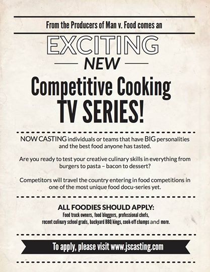 They are casting other shows as well: TV Food Network Star, Pressure Cooker (where you travel and cook with a clueless friend or family member), and Beat Bobby Flay.