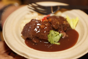 - Chef Jerome Grant of Mitsitam (smithsonian NIMAI): Green chili and pecan biscuit, rabbit sausage, duck egg, huckleberry preserve. This biscuit combo won the judge’s choice, a bit of a surprise to me. Perhaps I received a “bad duck egg,” but the biscuit was fairly dense; however, the rabbit sausage was rich, fatty and flavorful. As was a theme of the evening, the topping out did the biscuit. An absolute shame considering that a perfectly executed pecan biscuit would dominate any bread basket.