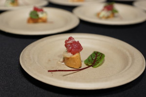 - Chef Louis Goral of Rural Society: Cielo y Mar Biscuit, Foie gras torchon, charred baby octopus, bourbon luxardo cherry glaze, orange. I WILL be paying Rural Society a trip. Foie gras is a weakness of mine, but rich foie gras countering chewy baby octopus balanced perfectly with an acidic top end and a sweet over note … made me happier than a pig in the sunshine (you’re welcome for the idiom). Whether on a biscuit or a stale vanilla wafer, undoubtedly, this creation was the most creative and well-rounded bite of the evening.