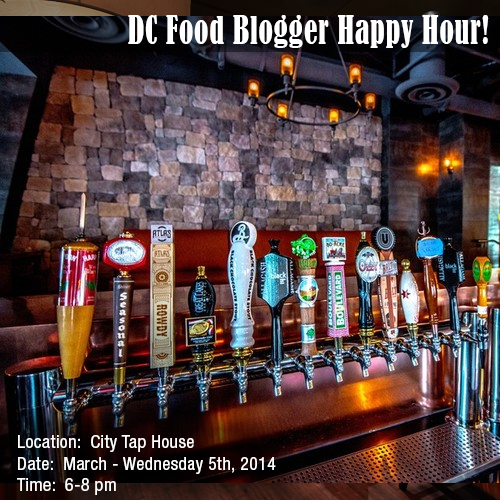 This Wednesday evening is March’s DC Food Blogger Happy Hour at City Tap House on March 5th, 6-8pm. Please RSVP here. I am hosting with Chito of RUNIN Out.