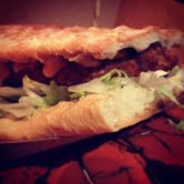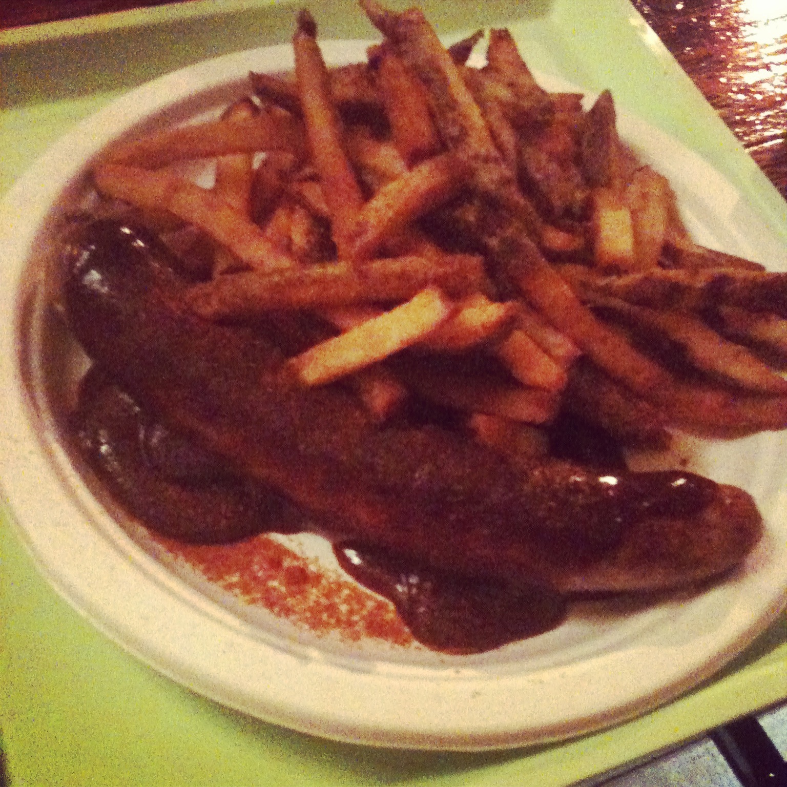 Döner Bistro 1As importantly, the menu at Döner Bistro is chock full of drunk food par excellence. Being particularly inclined to the miraculous achievement of food consumption that is the sandwich, I gravitate naturally to the outstanding schnitzel sandwich, which features a flattened and breaded veal cutlet stacked inside a German brötchen roll and slathered with a tangy, tangerine-colored “spezial” sauce. It recalls a lighter, less gut-busting take on the fried pork tenderloin sandwiches popular in Indiana and elsewhere in the American heartland, and it is an ideal nightcap after a night of vigorous imbibing.