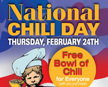 Feb. 24th, TOMORROW, is National Chili Day and Hard Times is marking the occasion by giving away a FREE bowl of chili with ANY purchase. Celebrate your love for chili with a great bowl of Red, Texas, Cincinnati or Veggie. For info visit www.hardtimes.com on your desktop or http://mpromo.hardtimes.com on your mobile phone.
