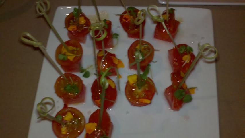 - Watermelon skewer with tomato caviar
