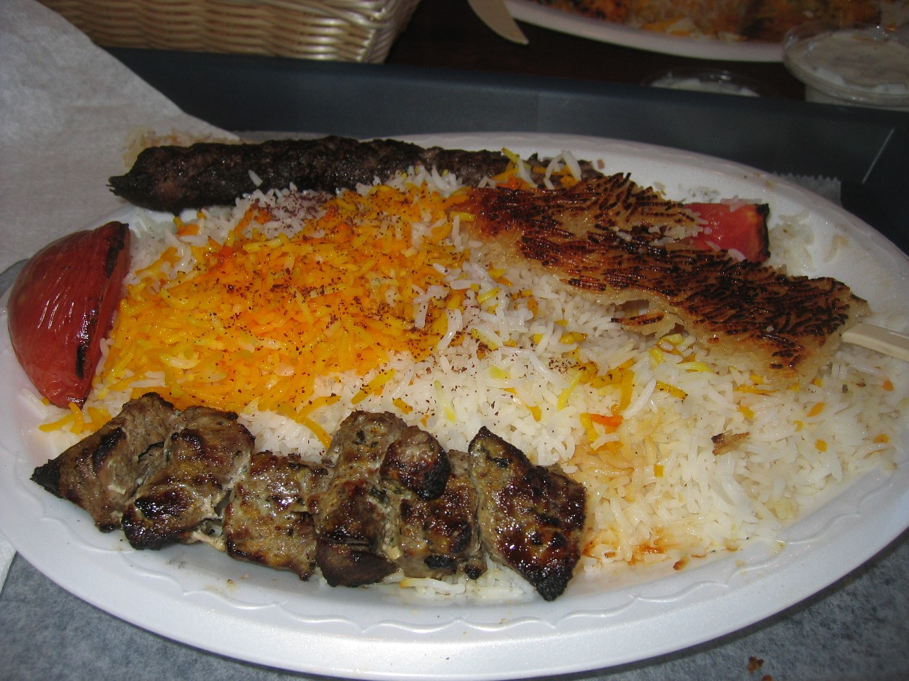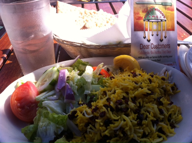 They do a good job with the rice and also have great vegetarian sides such as eggplant dishes, rice dishes, and pickled garlic (yum). Plus, your table gets a basket or flat bread and herbs, so that you can roll the bread upwith herbs and dip into the mint yogurt sauce.