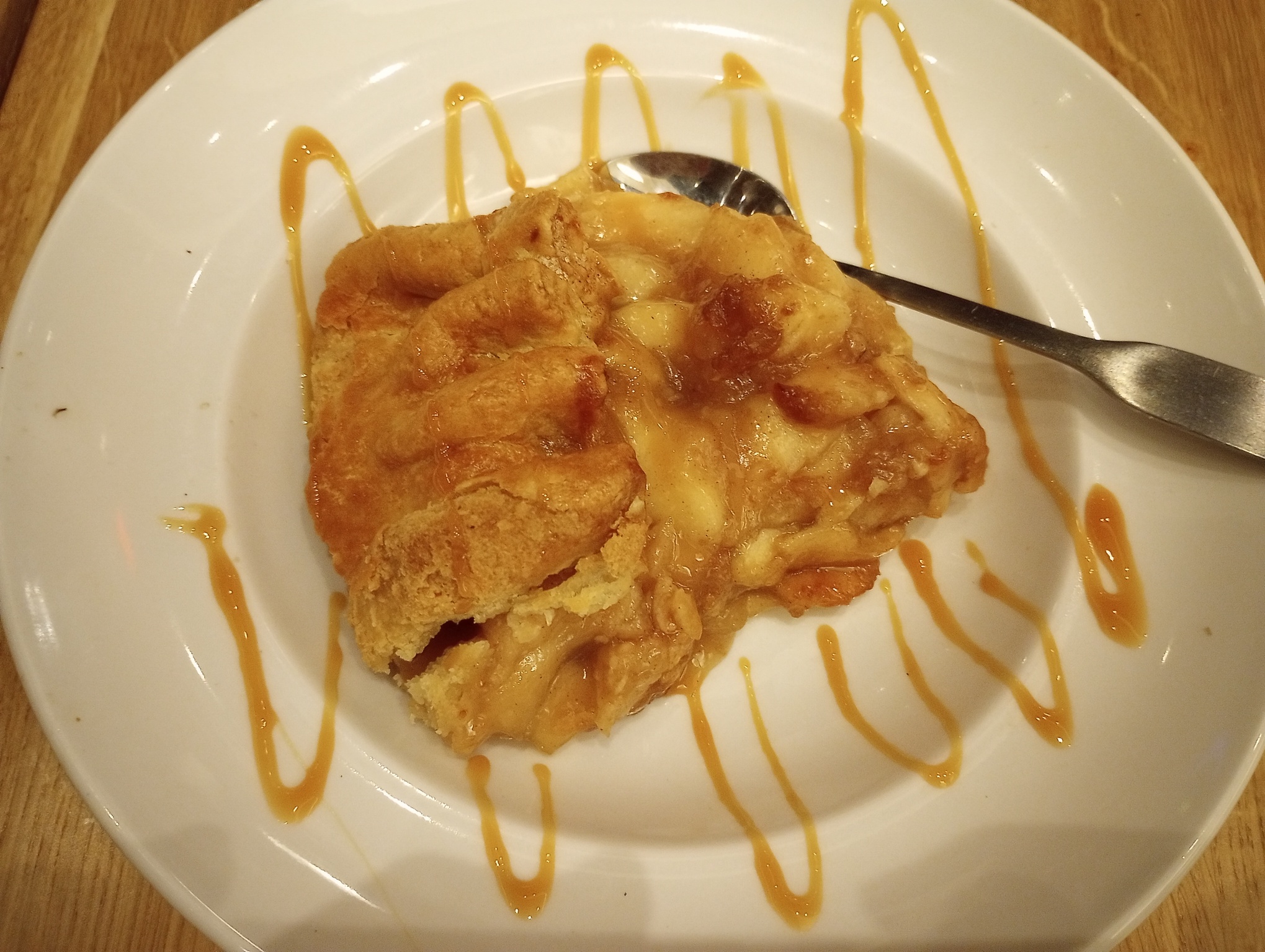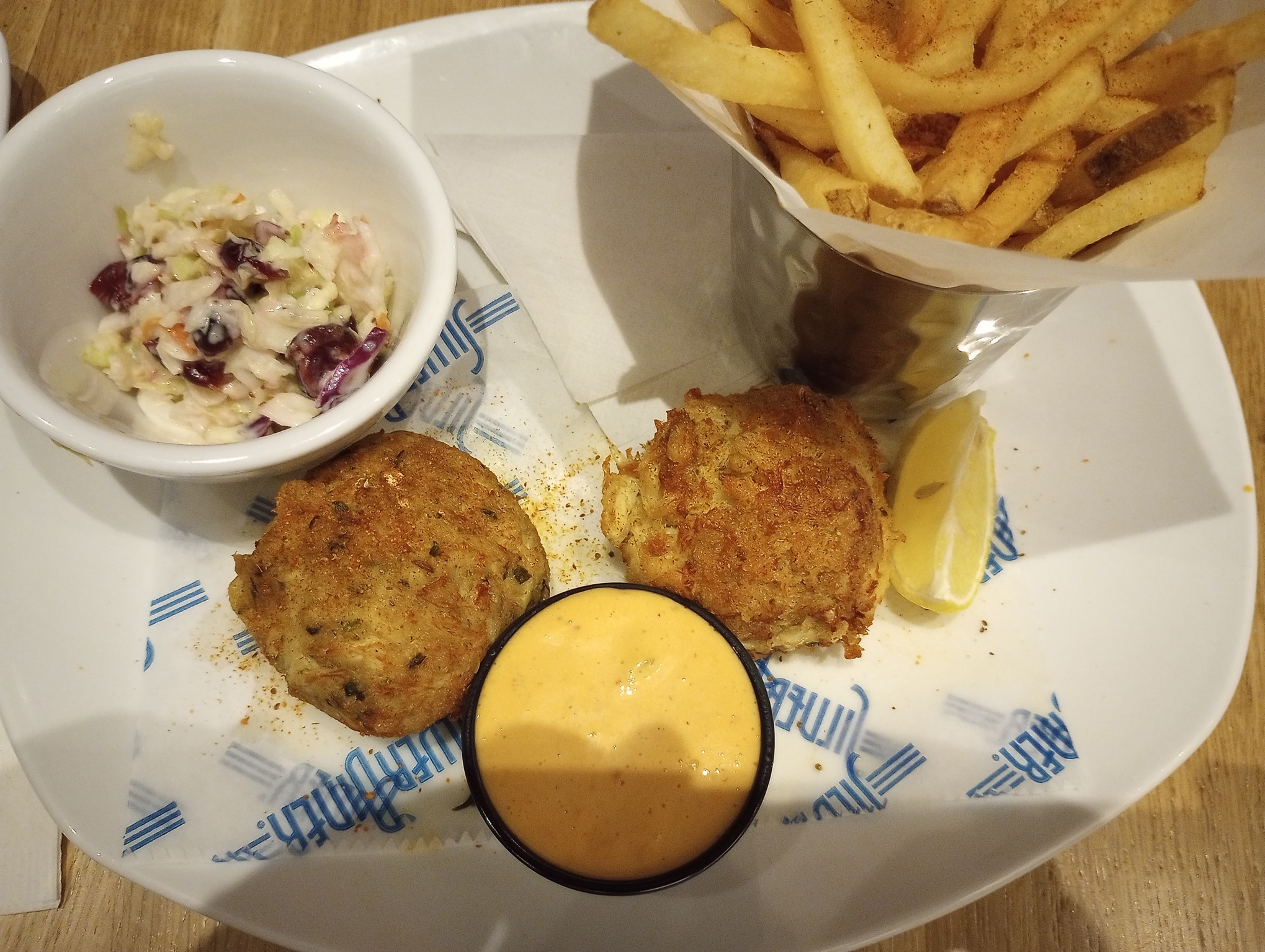 The chef hit on another theme I’ve heard from pros in the business: “Presentation is key. If something doesn’t look appealing, there’s a very good chance that nobody’s going to touch it.” The halibut, right out of the oven, was scorching hot and beautifully crisp, with a fantastic nutty flavor. The sauce, a simple lemon beurre blanc, went perfectly with the fish. The asparagus was tender, nicely seasoned, and plenty flavorful – even though it was simply prepared, the fresh produce he uses made a big difference. His crab cakes were gorgeously seared and full of crab flavor, with just a hint of mustard in the sauce. And he must be doing something right with those, because crab cakes Benedict is their most popular brunch dish – quite an achievement for this area, no?