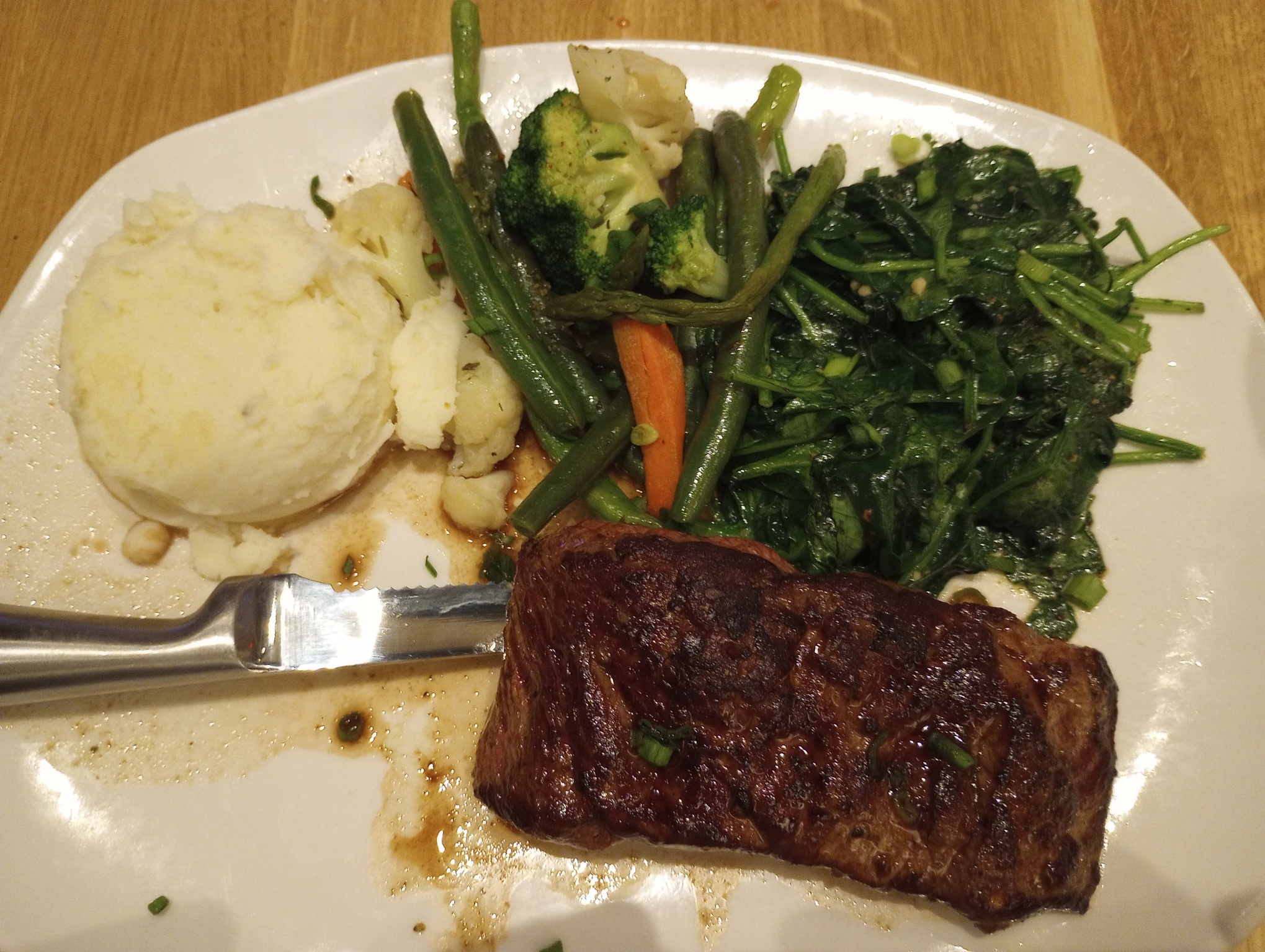 Chef Ishaq described his restaurant’s menu proudly: “Our specialty is as a steakhouse, but we have a little bit of everything to satisfy every palate.” He explained that his cooks work especially hard to accommodate customers with allergies: “We get allergy tickets left and right…but we’re here to satisfy – we don’t let people down. If I can do it for them, I will.” With even a small chain restaurant, the chef has a little less control over the menu than he might at a neighborhood store. Chef Ishaq sends ideas up to his bosses quite a bit, but he gets to demonstrate his chops a bit with daily specials. When conceptualizing specials, he said, the single biggest factor is the season, which governs what’s available and if he can get it fresh and cheap. The restaurant also works hard to use local purveyors whenever possible – the chef mentioned a Pennsylvania farm that sends them fresh fruits and vegetables, and another purveyor who sells him “unbelievable” high-quality eggs that he usually moves during brunch in frittatas and sauces. For Easter Sunday alone, he said, they restaurant had ordered 30 dozen eggs, and his staff went through 5 pitchers of Hollandaise sauce.