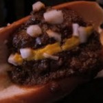 The main course was a Chicago-style Italian Beef sandwich served with sweet peppers and cheese fries. The sandwiches arrived wrapped in grease-spotted paper, and the cheese fries were served in paper sleeves just like you can get at the ballpark – nice touches, both of those. The fries were crisp and hot, and the cheese sauce fantastic. I spotted a couple of people digging the last of the sauce out onto their plates so they could finish it. Waiters circulated during this course with Goose Island Honkers Ale, a made-in-Chicago label.