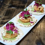 I have eaten at two of Zengo’s Test Kitchen events previously, and while both of those menus had some good dishes, every dish on the current Test Kitchen menu was outstanding. Yes, I would have made a couple of minor adjustments plating the Whole Crispy Fried Fish, but it was still a great dish and we were very happy that the fish of the day was red snapper. The red snapper was de-boned and left head on, which was an elegant way to present the whole fried fish. The Hong Kong Roast Chicken (prepared as an airline cut) was also a great dish, with the flavors of the Shaoxing wine, smoky rice and beans, and Chinese broccoli working well together. I enjoyed both the small plates, Adobo Sweet & Sour BBQ Pork Ribs and Foie Gras-Plantain Mofongo Shumai. The papa rellena (stuffed with cheese and bacon) from the rib dish should be served on the regular menu (if they are not already), possibly as happy hour bites. I was a bit worried about the foie gras dish since I am not a fan of that particular ingredient, but the shumai were delicious, with the black vinegar and ground pork topping adding to the success of the dumplings. The Coconut Tapioca Pudding (dessert) was served with lemon sorbet and guanabana espuma (foam).